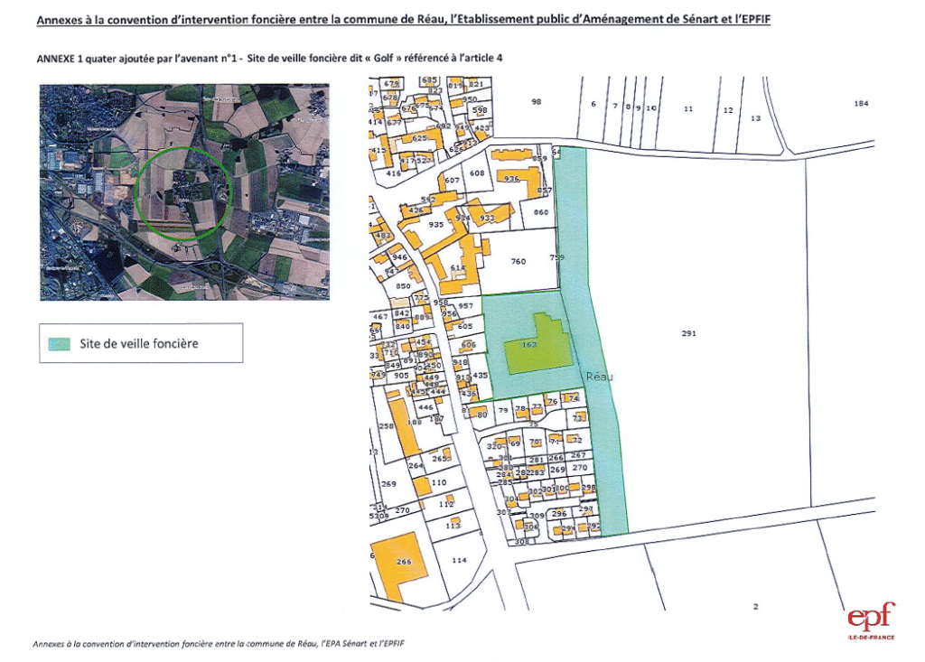 • La convention de 2023 fait le point : 8 905 239,35 euros ont été engagés pour l’ensemble des acquisitions foncières, dont les données du site des valeurs foncières confirment des transactions sur le Golf et le Parc A5.